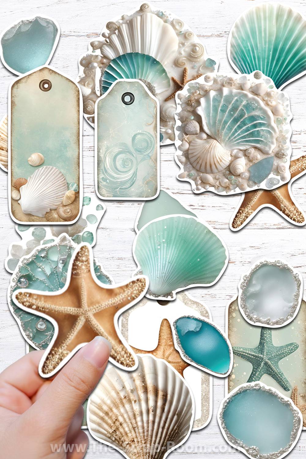 This 2 page set of printable Beachy Stickers is perfect for all your summer and beach themed paper craft projects. Decorate summer scrapbook pages, create beach themed wedding invitations, beachy thank you or birthday cards, decorate your beach theme junk journal -- there are so many creative ways you could use these stunning printable stickers and ephemera!